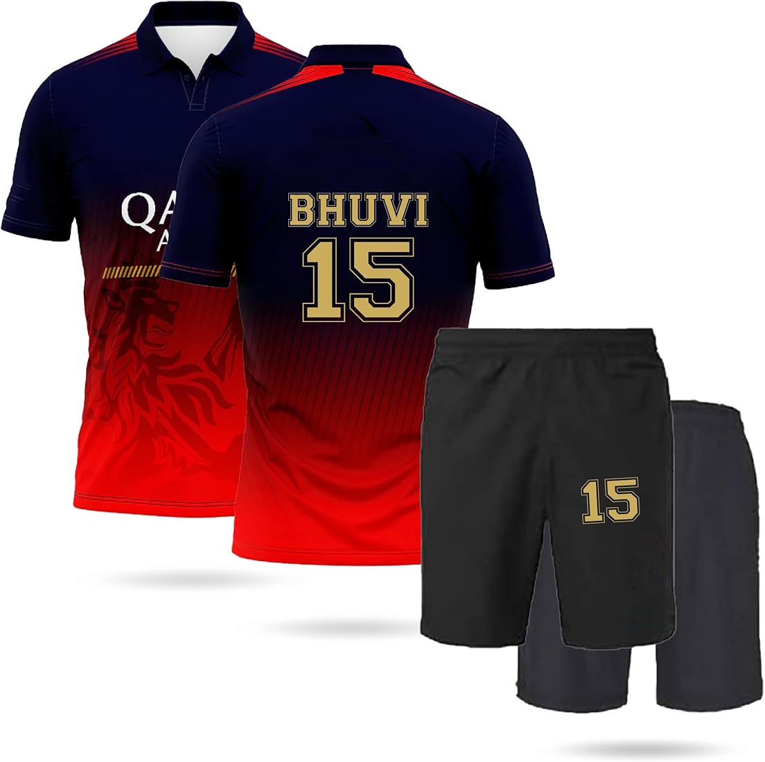 Team jerseys and supporter tees laid out in a stadium locker room, vibrant colors, energetic atmosphere, ready for match day.
